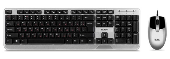 Keyboard & Mouse SVEN KB-S330C, Fullsize layout, Splash proof, Fn key, Black, USB, Optical, 800 dpi, 3 buttons, Ambidextrous Производитель SVEN Модель KB-S330C Black Тип клавиатуры проводная Тип клавиатуры Мембранная Предназначение Классическая Количество клавиш 104 Мультимедийные клавиши + Тип мыши оптическая Разрешение 800 dpi Количество кнопок мыши 3 Подключение USB
