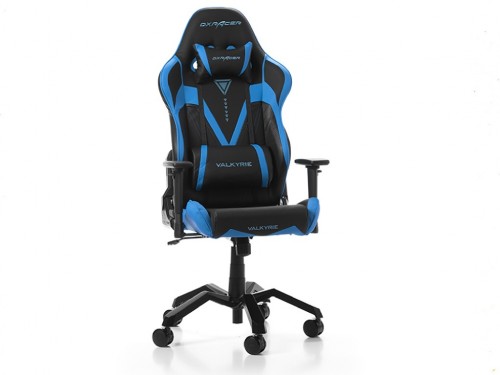 Gaming/Office Chair DXRacer Valkyrie GC-V03-NB-B1, Black/Blue, Premium PU leather + Perforated & Carbon look PVC, max weight up to 150kg / height 165-195cm, Recline 90°-135°, 3D Armrests, Head&Lumbar Cushions, Aluminium Spider, 3"PU Caster, W-23.7kg