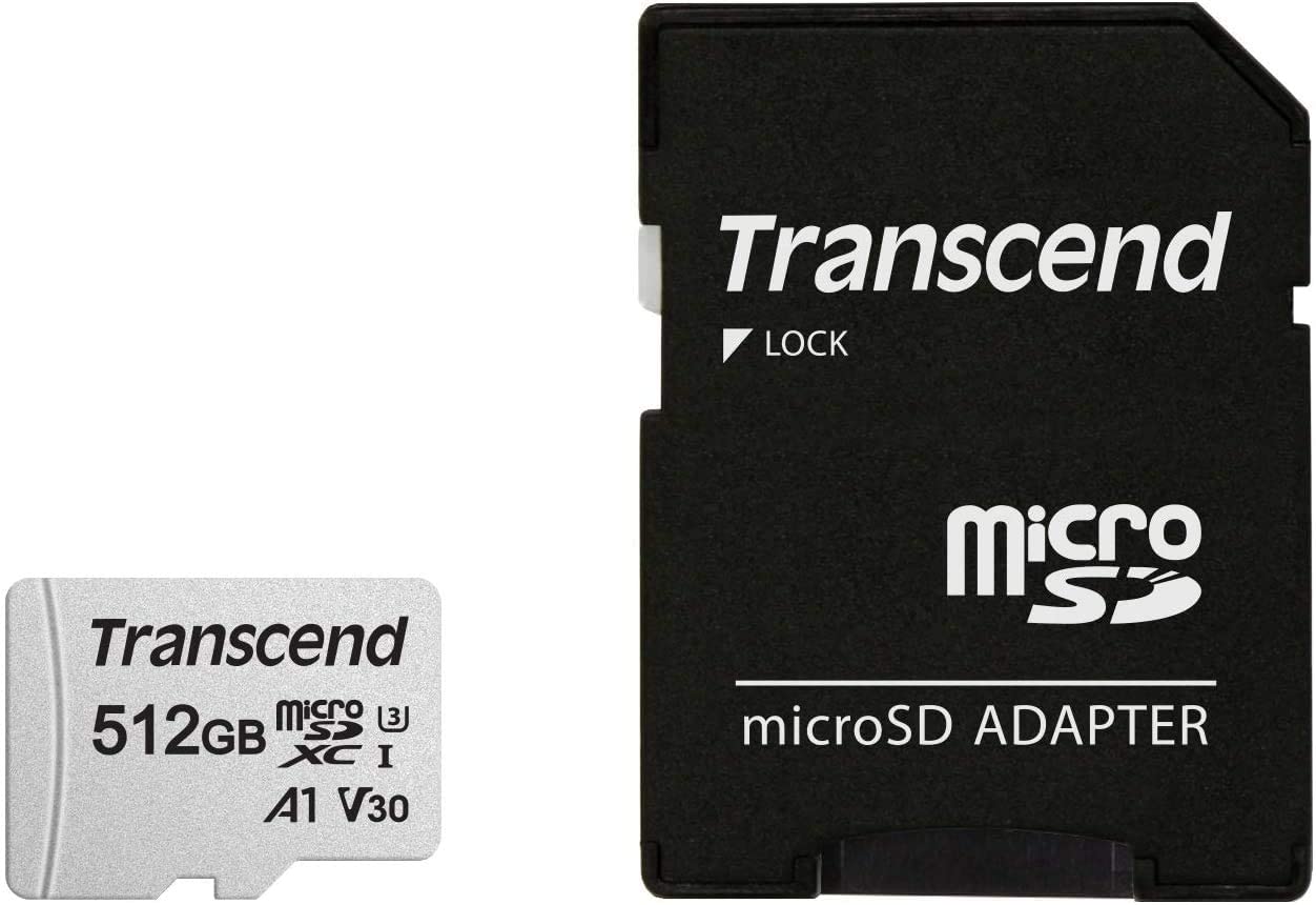 512GB MicroSD (Class 10) UHS-I (U3) +SD adapter, Transcend "TS512GUSD300S" (R/W:95/40MB/s)512GB MicroSD (Class 10) UHS-I (U3) +SD adapter, Transcend "TS512GUSD300S" (R/W:95/40MB/s)