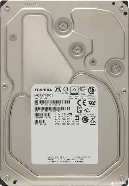3.5" HDD 6.0TB Toshiba MG04ACA600E Enterprise / Server, 7200rpm, 128MB, 512E model, SATAIII Емкость накопителя 6 ТБ Форм-фактор 3.5" Интерфейс SATAIII Скорость вращения шпинделя 7200 об/мин