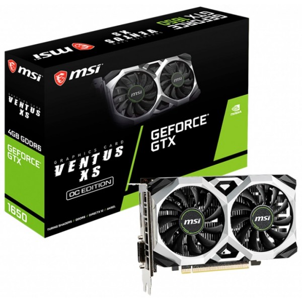 MSI GeForce GTX 1650 D6 VENTUS XS 4G OC / 4GB GDDR6 128Bit 1620/12000Mhz, DVI-D, HDMI, DisplayPort, Dual fan - Customized Design, TORX Fan2.0, Gaming App, Retail