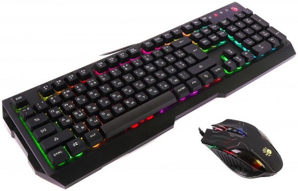 Gaming Keyboard & Mouse A4Tech Bloody Q1300, Multimedia Hot-Keys, Game Mode,Backlights, Black, USB Тип - игровой, проводной, с подсветкой, интерфейс подключения - USB, формат клавиатуры - полноразмерная, тип сенсора мыши - оптический, разрешение (max) - 3200 dpi, цвет комплекта - Black Количество кнопок 7 Дополнительные функции влагоустойчивость, сменные клавиши Цвет Черный Тип подключения USB Страна-производитель товара Китай