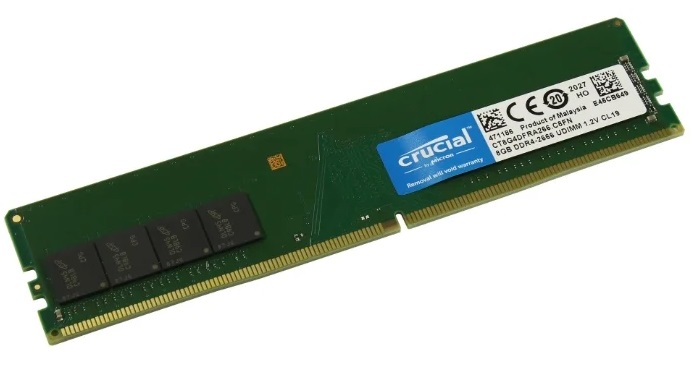 8GB DDR4 Crucial CT8G4DFRA266 DDR4 8GB PC4-21300 2666MHz CL19, Retail (memorie/память) 1 модуль памяти DDR4 объем модуля 8 ГБ форм-фактор DIMM, 288-контактный частота 2666 МГц CAS Latency (CL): 19