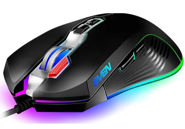 SVEN RX-G850 RGB Gaming, Optical Mouse, 500-6400 dpi, 7+1 buttons (scroll wheel), DPI switching modes, USB