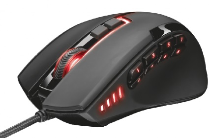 Trust Gaming GXT 164 Sikanda MMO Mouse, 100 - 5000 dpi, 13 programmable buttons, 8 thumb buttons designed for MMO games, RGB LED illumination, On-board memory for 4 gaming profiles, 1,8 m USB, Black