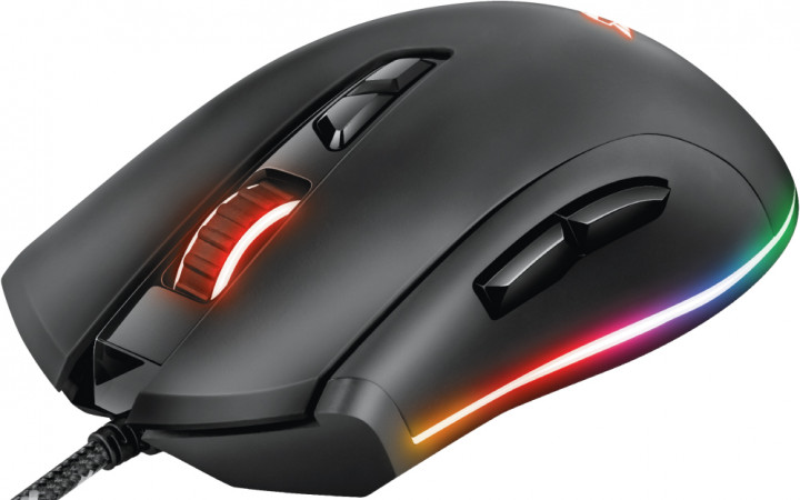 Trust Gaming GXT 900 Qudos RGB Mouse, 100 - 15000 dpi, 7 Programmable button, Advanced software for programming buttons and light effects, Full RGB LED lighting with rainbow wave effect, 1,8 m USB, Black Подключение Проводное Размер мыши Большая Назначение Игровые Тип датчика Оптический