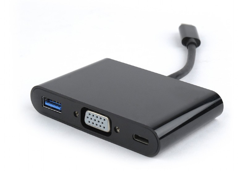 Adapter 3-in-1 Type-C to VGA/USB3.0/Type-C sockets, cable 0.15m, Cablexpert A-CM-VGA3in1-01 Кабель-адаптер USB-C три-в-одном Зарядный розетка USB-C (без передачи данных) Порт розетка USB 3.0 AF: подключайте свою флешку, камеру или мобильник для передачи данных Видео-выход VGA (розетка): получите Full HD видео на свой аналоговый монитор, телевизор, проектор