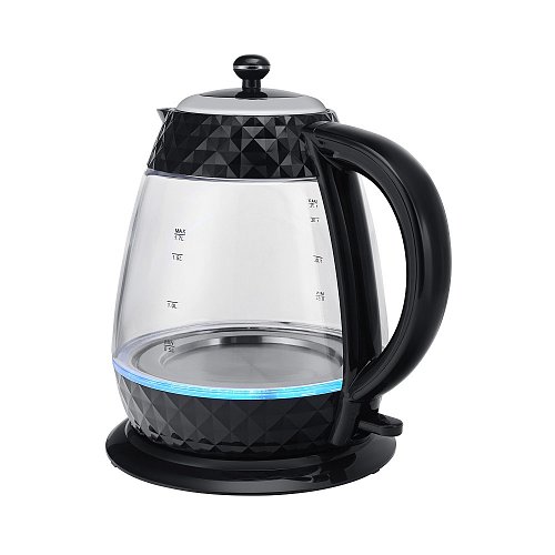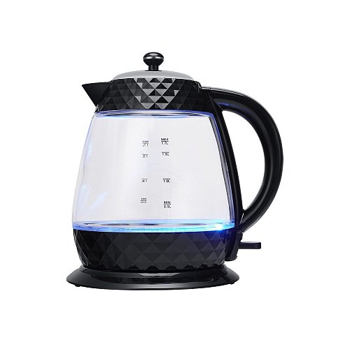 Kettle Polaris PWK1750CGL, Glass, 2200W, 1,7l, concealed heating element, 360° swivel base, black