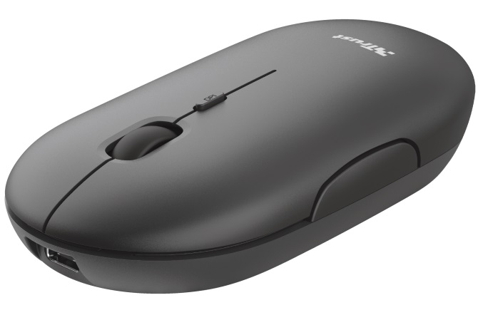 Trust Puck Rechargeable Bluetooth Wireless Mouse, Silent Click, Bluetooth, 2.4GHz, Nano receiver, 800/1200/1600 dbi, USB, Black