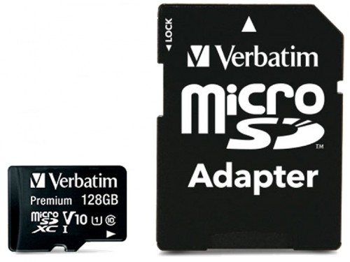128GB microSD Class10 A1 UHS-I + SD adapter Verbatim Premium microSDXC, 600x, Up to: 90MB/s