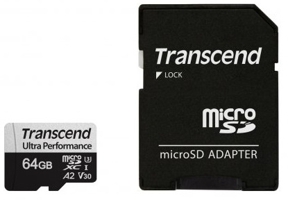 .64GB MicroSD (Class 10) UHS-I (U3),+SD adapter, Transcend "TS64GUSD340S" (V30, A2, R/W:160/80MB/s)