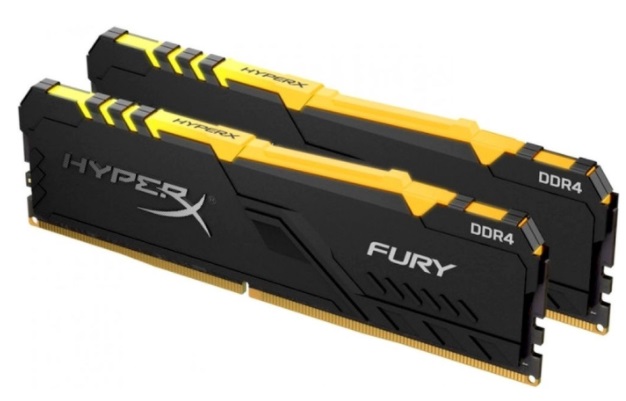 32GB (Kit of 2*16GB) DDR4-2666 Kingston HyperX® FURY DDR4 RGB, PC21300, CL16, 1.2V, 1Rx8, Auto-overclocking, Asymmetric BLACK heat spreader, Dynamic RGB effects featuring HyperX Infrared Sync technology, Intel XMP Ready (Extreme Memory Profiles)