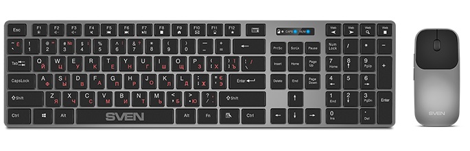 Wireless Keyboard & Mouse SVEN KB-C3000W, Silent, Low profile, 12 Fn keys, 2.4 GHz, 2xAAA/1xAA