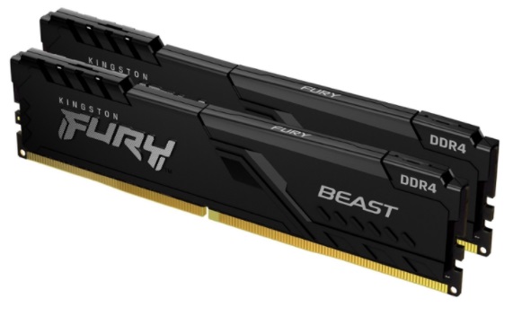 64GB (Kit of 2*32GB) DDR4-3600 Kingston FURY® Beast DDR4, PC28800, CL18, 1.35V, Auto-overclocking, Asymmetric BLACK low-profile heat spreader, Intel XMP Ready (Extreme Memory Profiles)