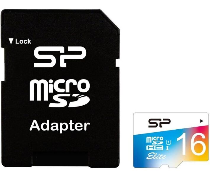 16GB microSD Class10 U1 UHS-I + SD adapter Silicon Power Elite Color microSDHC, Up to: 90MB/s