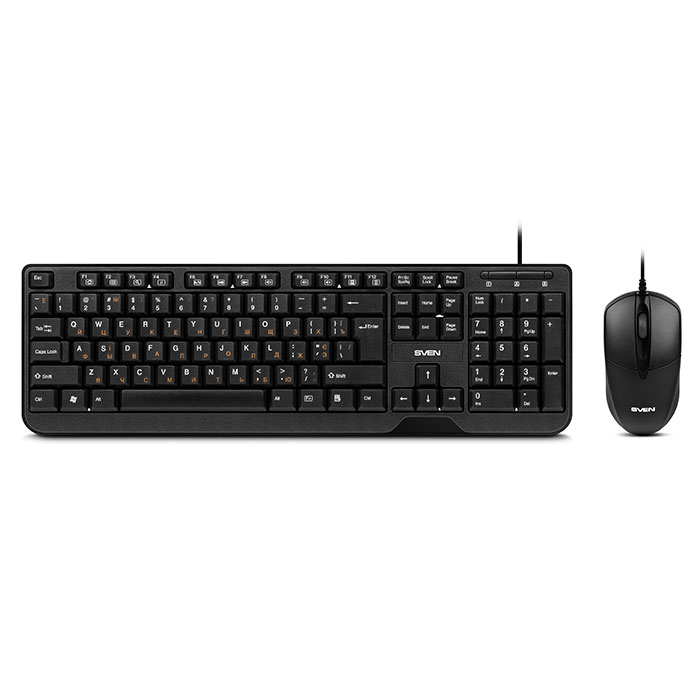 SVEN KB-S320C, Keyboard 104 keys + Mouse (Optical 800 dpi, 3+1 (scroll wheel)), Waterproof design, 1.5m, USB, Black