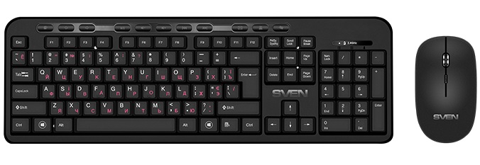 SVEN KB-C3200W, Wireless, Multimedia Keyboard & Mouse, 2.4GHz, (115 keys, 11 Fn-keys) + Mouse (3 + 1 (scroll wheel), 800/1200/1600 dpi), Nano receiver, USB, Black