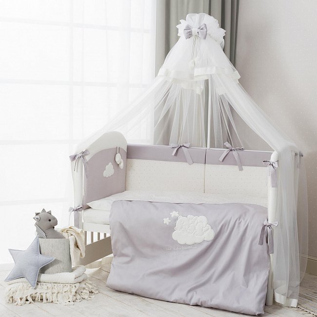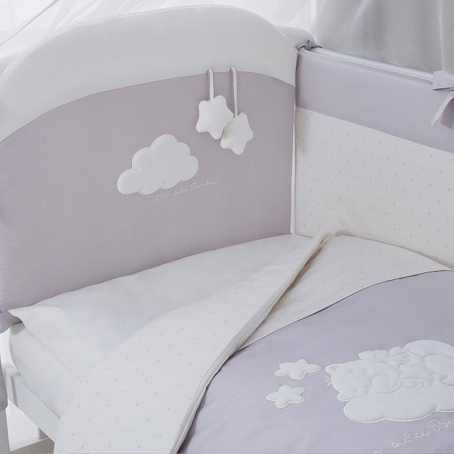 Комплект постельного белья для детей "Бамбино" т.м.Perina, арт. ББ6-01.2 (цвет Грей) (страна пр-ва: РБ) Дизайн модели «Бамбино» окружит вашего малыша теплом семейного уюта. Природные оттенки и спокойные тона элитного сатина убаюкивают перед сном, а стильные и абсолютно натуральные плюшевые игрушки и объемная велюровая аппликация займут маленького первооткрывателя после пробуждения. В комплект из 6-ти элементов входит Простыня на резинке 162х102 см Наволочка 60х40 см Подушка 60х40 см Пододеяльник на молнии 143х102 см Одеяло 140х100 см Бампер со съемным чехлом 360х38 см Sateen premium 100% cotton Элитный сатин с эффектом шелка. Это самый дорогой вид хлопка, его отличие - в длинных и тонких волокнах. Постельное бельё, изготовленное из такой ткани, более нежное и блестящее. Оно дарит особенное удовольствие от каждого прикосновения, не садится, не линяет, на нем не образуются катышки. Фактически, с каждой стиркой оно становится только мягче и приятнее на ощупь. Пододеяльник на молнии Вместо традиционной прорези в наших комплектах используется застежка-молния, которая аккуратно спрятана в нижней части пододеяльника. Обычный клапан после нескольких стирок растягивается, приобретает неряшливый вид, а застежка-молния помогает сохранить форму пододеяльника значительно дольше. Бампер со съёмным чехлом Для дополнительного удобства бампер сделан из отдельных частей со съемным чехлом. Теперь вы легко можете стирать только внешнюю часть бампера, не затрагивая внутреннее наполнение. Наполнитель Hollcon — экологически чистый, гипоаллергенный и легкий материал. Прекрасно сохраняет форму и надежно защищает малыша. Простыня на резинке Это уже давно стало стандартом. Такую простыню легко заправлять, легко снимать. Она никогда не будет съеживаться во сне, даже если ребенок много ворочается, тем самым обеспечивая малышу больший комфорт, чем при использовании обычных простыней. Одеяло эвкалипт Поверхность одеяла изготовлена из 100% хлопка; наполнитель: 30% эвкалиптовое волокно, обеспечивающее плотность, долговечность и дополнительные полезные свойства материала, и 70% экологически чистое полиэфирное волокно. Сочетание прочной «дышащей» ткани и объемного наполнителя обеспечивает оптимальный температурный баланс в течение всего года: летом под одеялом не жарко, а зимой не холодно. Натуральные волокна эвкалиптового дерева обработаны с применением нанотехнологий. Структура волокна очень нежная, одеяло приятное и мягкое на ощупь. Волокна эвкалипта предотвращают размножение бактерий и пылевых клещей. Уход Товары из 100% хлопка рекомендуется стирать при температуре не выше 30С, гладить аккуратно при температуре 110С. Предварительная стирка обязательна.