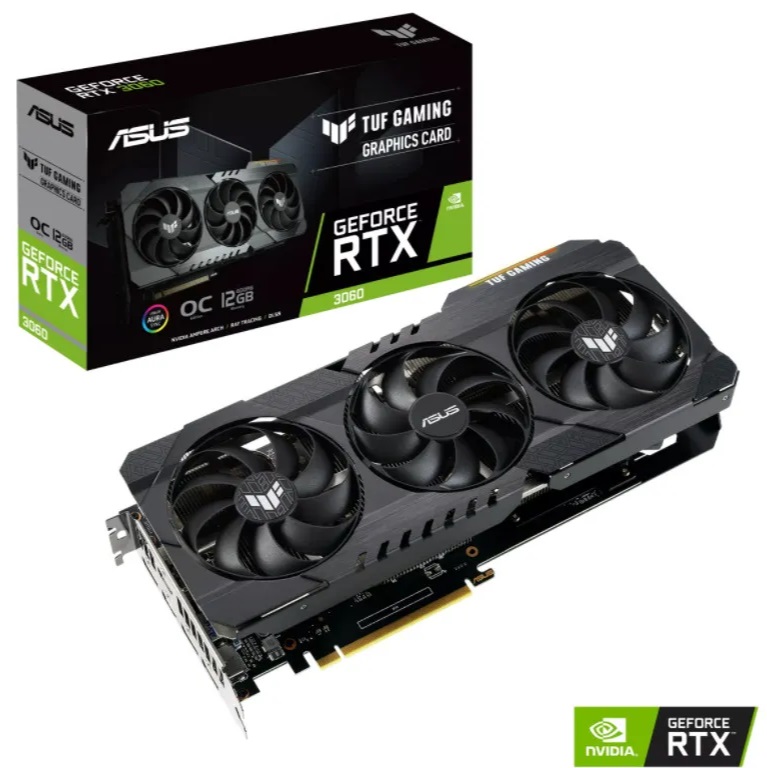 ASUS TUF-RTX3060-O12G-V2-GAMING, GeForce RTX3060 12GB GDDR6, 192-bit, GPU/Mem speed 1882/15Gbps, PCI-Express 4.0, 2xHDMI 2.1/3xDisplay Port 1.4a (placa video/видеокарта) Объем памяти 12 ГБ Тип памяти GDDR6 Частота графического процессора 1320 Тип шины PCI Express 4.0 Тип охлаждения Активное Выходные интерфейсы HDMI, DisplayPort Ширина шины памяти 192 бит Входные интерфейсы PCI-E AIC Частота шины памяти 15000 Мгц Поддерживаемые API DirectX 12, OpenGL 4.6