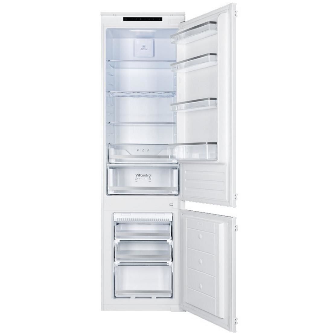 Холодильник HANSA BK347.3NF Общий полезный объём, л 281 Объём холодильной камеры, л 225 Объём морозильной камеры, л 56 Количество ящиков морозилки 3 Высота, см 193.7 Ширина, см 54 Глубина, см 54 Вес, кг 62 Система охлаждения и разморозки хол. камеры капельная Система охлаждения и разморозки мор. камеры No Frost Количество камер 2 Количество дверей 2 Хладагент R600a Класс энергопотребления A+ Энергопотребление в год, КВт 300 Тип подсветки LED Освещение холодильной камеры да Мощность замораживания, кг в сутки 3 Автономное сохранение холода, ч 11 Уровень шума, дБ 41 Материал полок стекло Дверные ручки скрытые Цвет белый Производитель Hansa