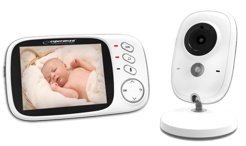 Baby monitor Esperanza JACOB EHM002, LCD 3.2", Range: 50m indoor, 260m outdoor, Automatic night vision, VOX function, Long battery life (up to 20 hours in VOX mode), Cable length of power adapter: 250 cm, 2 Power adapters, Multiple languages support (Eng