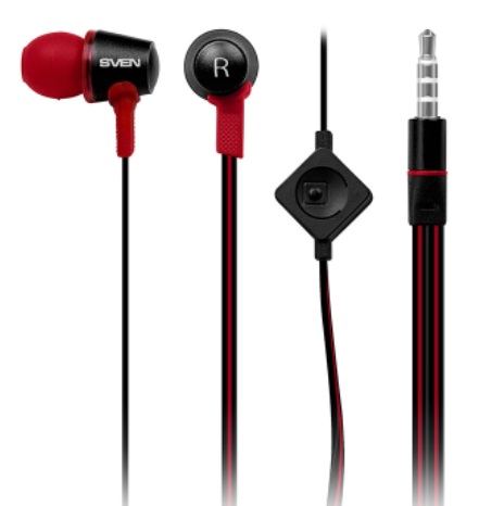 Earphones SVEN E-190M, Black, with Microphone, 4pin 3.5mm mini-jack, cable 1.2m