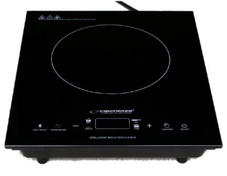 Induction Hot Plate Esperanza VESUVIUS EKH009 (EKH006) Black, 2000W, Cooking surface: Unpolished black crystal glass 12-20cm, 50% cooking time savings as compared to electrical hot plate, Automatic pot detection (automatic shut down if the pot is not s