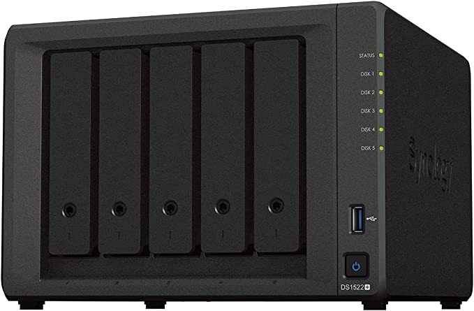 SYNOLOGYDS1522+,5-bay,AMDRyzen2-core2.6-3.1Ghz,8Gb*1+1Slot,4x1GbE,2xM.2NVMe,1xPCIe