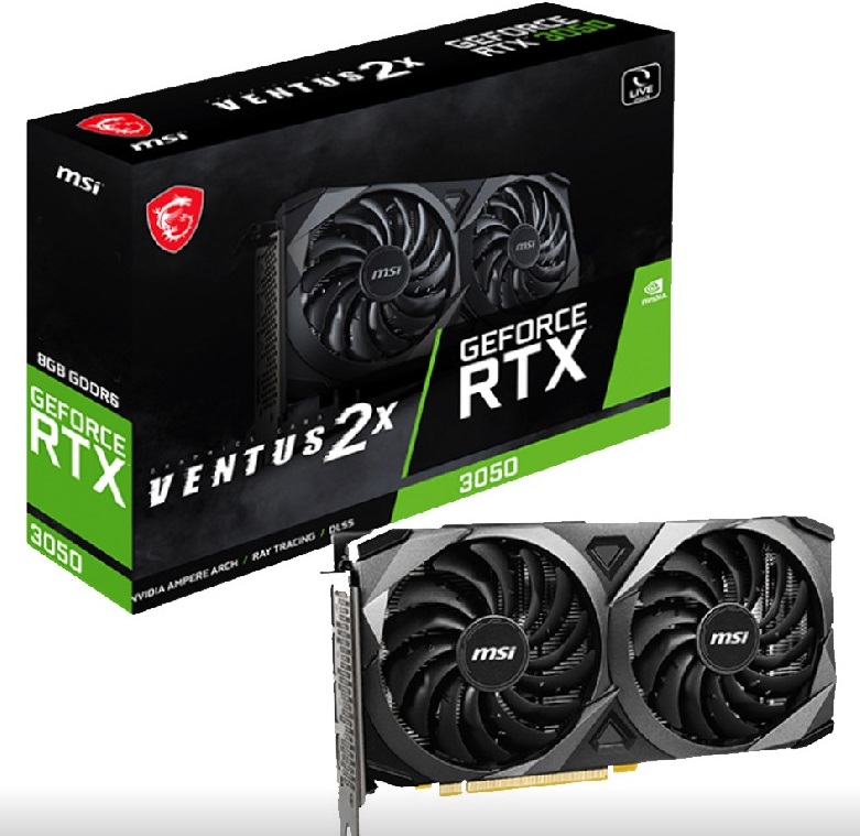 MSI GeForce RTX 3050 VENTUS 2X 8G OC / 8GB GDDR6 128Bit 1807/14000Mhz, Ampere, PCI-E Gen4, 1xHDMI, 3xDP, Dual Fan Thermal Design - Tailored PCB, TORX Fan3.0/Zero Frozr/Core Pipe, Reinforced Backplate, Retail