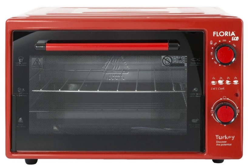 Электрическая печь Zilan ZLN5320 Gusto red 38L, 1 x enamel round tray, 1 x enamel square tray