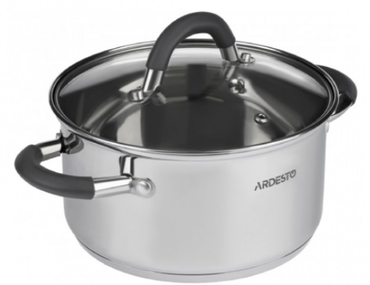 Кастрюля Ardesto Gemini Salerno, стеклянная крышка, 2.5 л, серые ручки с силиконом,нержавеющая сталь