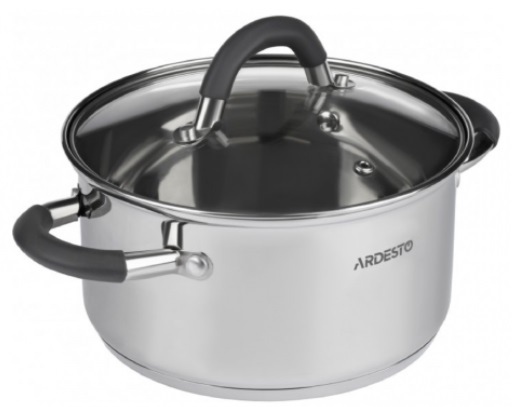 КастрюляArdestoGeminiSalerno,стекляннаякрышка,0.8л,ручкиссиликоном,нержавеющаясталь