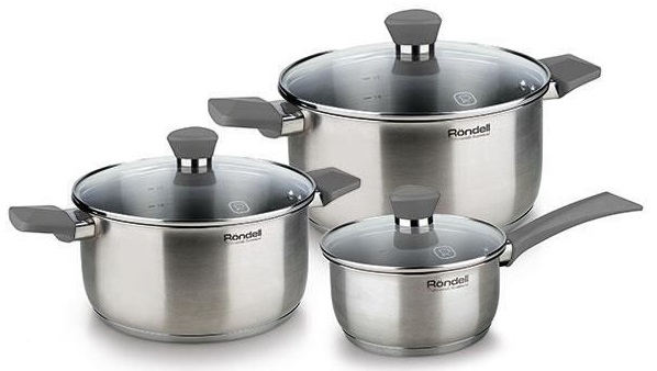 Pot Set Rondell RDS-820, Set, 6 pcs, pot 2.8L/ 20cm, 4.8 L/ 24cm with lid, ladle 1.4 L/ 16cm with lid, Fest, stainless steel