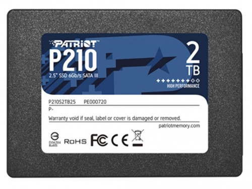 2,5" SSD 2.0TB Patriot P210, SATAIII, Sequential Read: 520MB/s, Sequential Write: 430MB/s, 4K Random Read: 50K IOPS, 4K Random Write: 50K IOPS, SMART, TRIM, 7mm, TBW: 960TB, SMI 2259XT Controller, 3D NAND TLC
