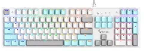 Gaming Keyboard Bloody S510R, Mechanical, BLMS Switch Red, Double-Shot Keycaps, White, USB Бренд Bloody Модель S510R Тип клавиатуры Проводная Тип клавиатуры Механическая Предназначение Игровая Тип переключателей BLMS Red Количество клавиш 104 Мультимедийные клавиши Есть Цвет подсветки RGB Водозащита Нет Подключение USB Размеры клавиатуры 446 x 132 x 37 мм