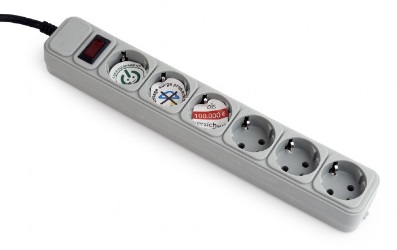 Surge Protector Gembird SPG6-B-6C, 6 Sockets, 1.8m, up to 250V AC, 16 A, safety class IP20, Grey