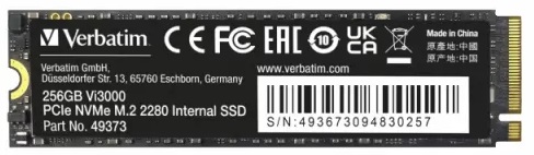 M.2 NVMe SSD 256GB Verbatim Vi3000, Interface: PCIe3.0 x4 / NVMe 1.3, M2 Type 2280 form factor, Sequential Read 3300 MB/s, Sequential Write 1300 MB/s, Random Read 100K IOPS, Random Write 100K IOPS, Phison E13T, TBW: 185TB, 3D NAND TLC