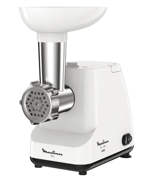 Мясорубка Moulinex ME111032, 1400W power output, 2 perforated discs , sausage and kebbe stuffers, grinding speed 1.7 kg/min, white Мощность: 1400 Вт Материал корпуса: Пластик Производительность : 1,7 кг/мин Реверс Насадка для приготовления колбас