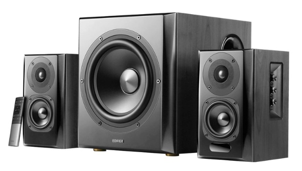 EdifierS351DBBlack,2.1/RMS150W(70W+2x40W),AudioIn:Bluetooth5.1aptXWirelessSound,RCAx2,PC,AUX,optical,coaxial,remotecontrol,allwooden,(sub.8"+satl.(3,5"+1"))