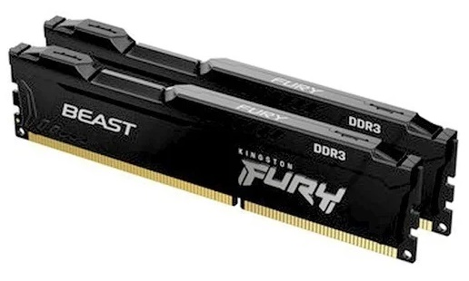 16GB (Kit of 2*8GB) DDR3-1866 Kingston FURY Beast (Dual Channel Kit), PC14900, CL10, 2Rx8, 1.5V, Auto-overclocking, Asymmetric BLACK heat spreader