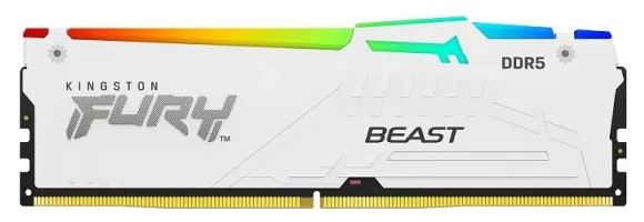 16GB DDR5-5600 Kingston FURY® Beast DDR5 White RGB EXPO , PC44800, CL36, 1.25V, 1Rx8, Auto-overclocking, Asymmetric WHITE Large heat spreader, Dynamic RGB effects featuring HyperX Infrared Sync technology, AMD® EXPO v1.0 and Intel® Extreme Memory Profile