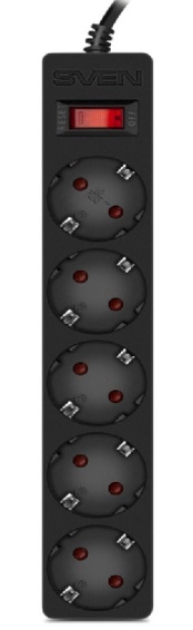 Surge Protector SVEN SF-05E, 5 Sockets, Children protection, 1.8m, Black