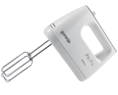 Mixer Gorenje M420CW, 400W power output, 5 speed levels plus moment level/turbo level, 2x dough hook, 2x beater, bowl with volume of 2l, foot mixer rod, white Размеры : 18.8 x 8.4 x 14.2 см Бренд : Gorenje Мощность : 450 Вт Количество скоростей : 5 Длина сетевого шнура : 1.3 м Насадки : Турбо венчики, крюки для теста Материал корпуса : Пластик
