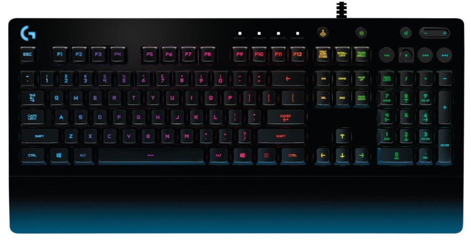 Logitech Gaming Keyboard G213 Prodigy, Mech-Dome, Spill resistance, Media controls, RGB, Integrated palm rest, Adjustable feet, Anti-ghosting, Game Mode, USB, Black, RU layout